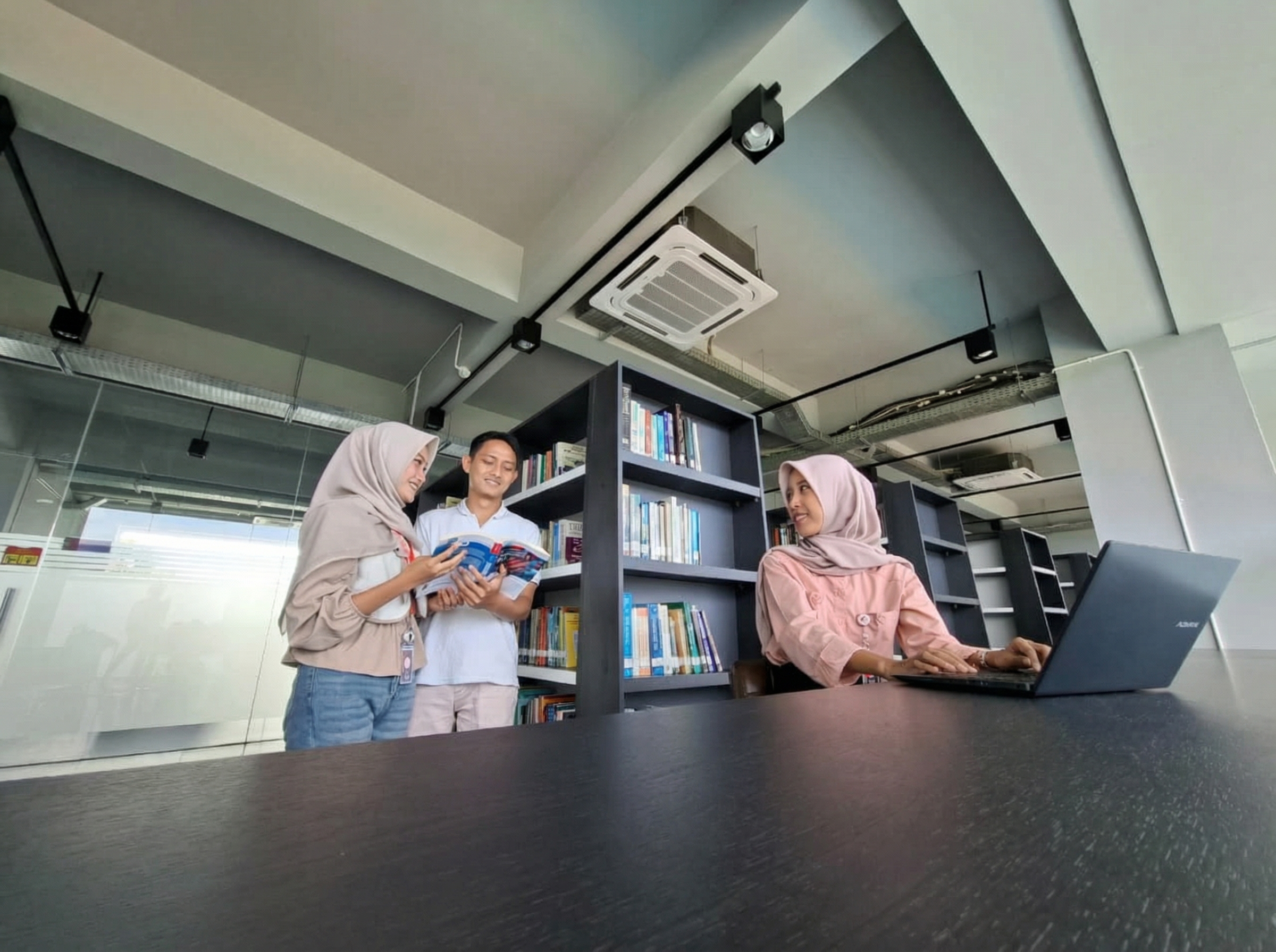 Perpustakaan kampus menyediakan beragam koleksi buku, jurnal, serta referensi digital untuk mendukung proses akademik.