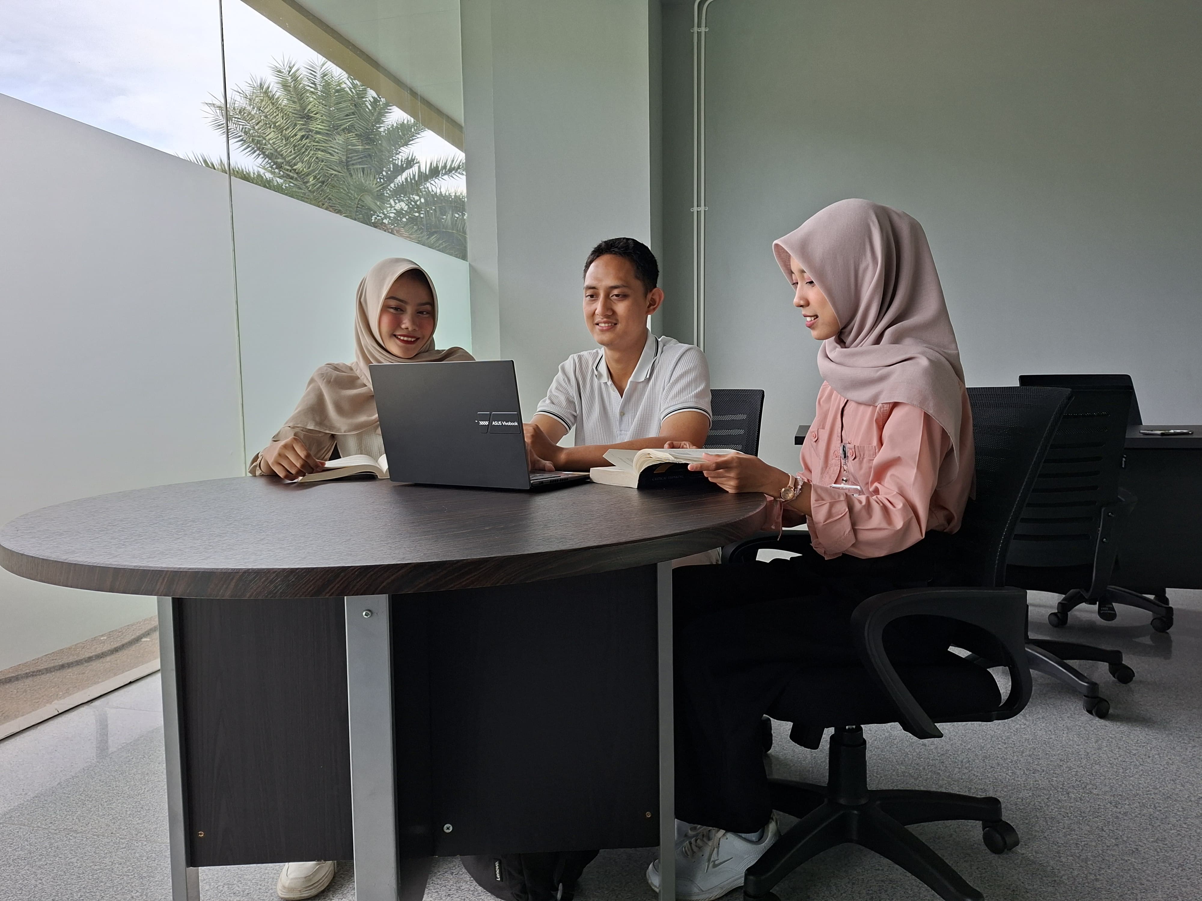 Ruang diskusi disediakan untuk mendukung kegiatan kolaborasi, presentasi, dan kerja kelompok. Dengan suasana yang kondusif dan nyaman, mahasiswa dapat berdiskusi, bertukar ide, serta menyelesaikan proyek secara efektif.